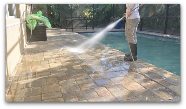 The final step in our lanai cleaning process is a thorough rinse. We carefully rinse away any remaining soap, dirt, and debris, ensuring that your lanai is spotless. During this stage, we also rinse surrounding walls, furniture, and plants, taking extra care to direct water away from your pool area. This minimizes the amount of debris that could potentially enter your pool, keeping it clean and inviting.